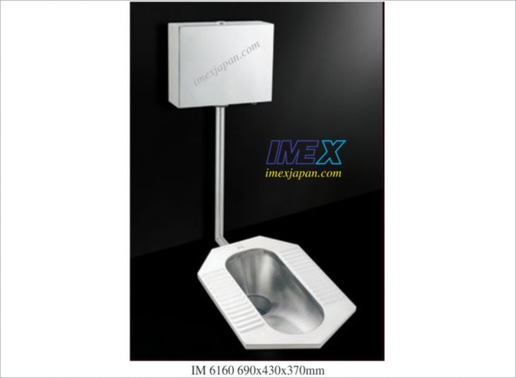 Bàn cầu ngồi xổm, két nước treo tường, chất liệu Inox304, S-trap 560, đường kính lỗ xả bên ngoài 63mm. kích thước: 69*43*37cm