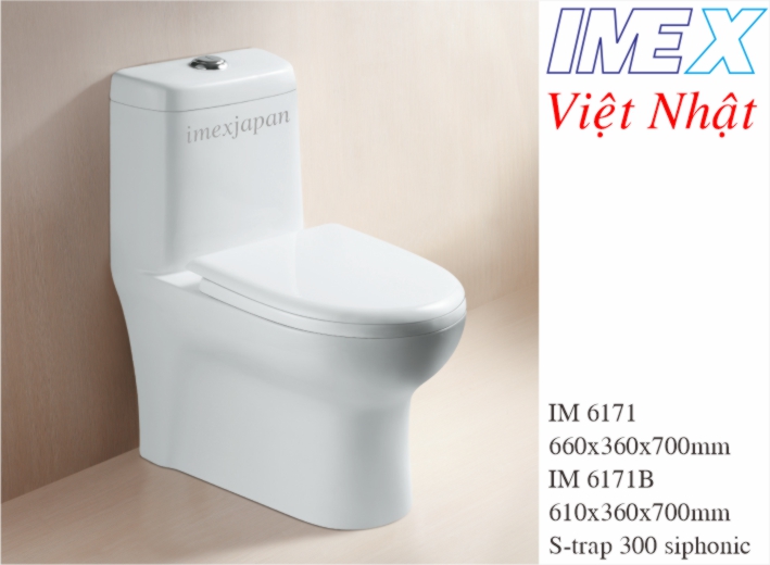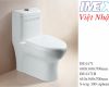 Bàn cầu một khối, nắp rơi êm nhựa PP, xả 3/6 lít hệ thống xả siphonic đẩy và hút, tim xả trên sàn 300/400mm.