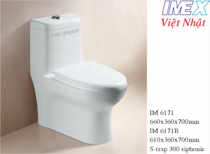Bàn cầu 1 khối, nắp rơi êm nhựa PP, xả 3/6 lít hệ thống xả siphonic đẩy và hút, tim xả trên sàn 300/400mm,