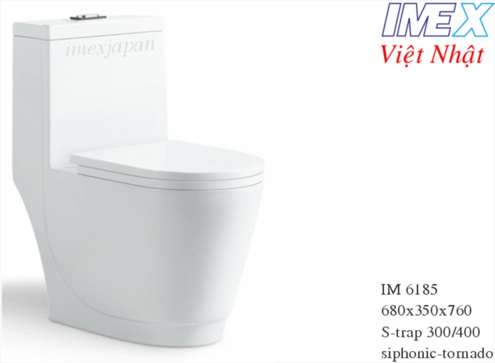 Bàn cầu 1 khối, nắp rơi êm nhựa UF, xả nhấn 3/6 lít, tim xả trên sàn S-trap 300mm. Hệ thống xả Siphonic - Tornado đẩy và hút,vị trí 202