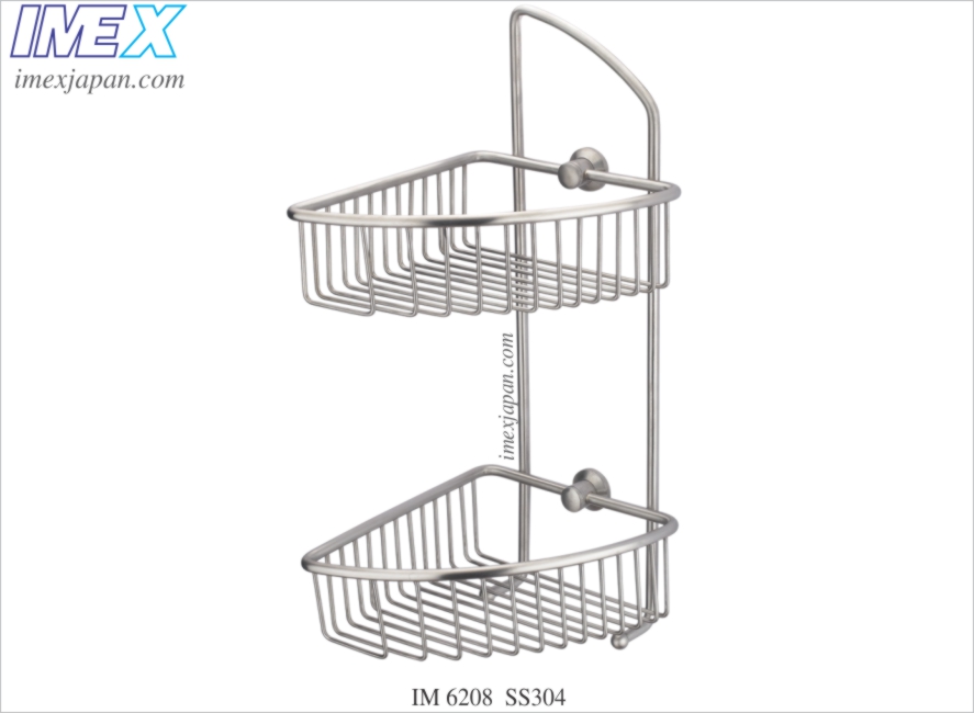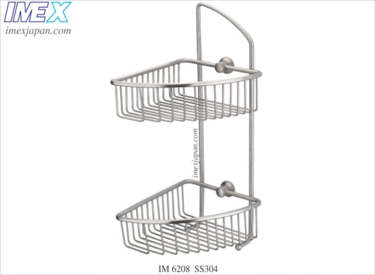 Rổ góc / tường thẳng để dầu gội sữa tắm… 2 tầng, Inox mờ 304, Kích thước: 175x200x430mm.