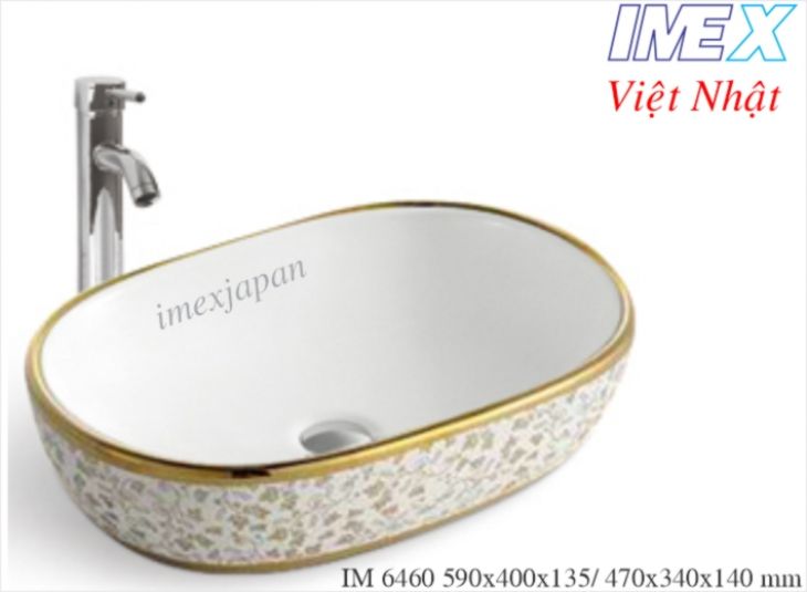 Lavabo hoa văn để bàn IM 6460, men sứ nano chống bám bẩn, vòi gắn phía sau