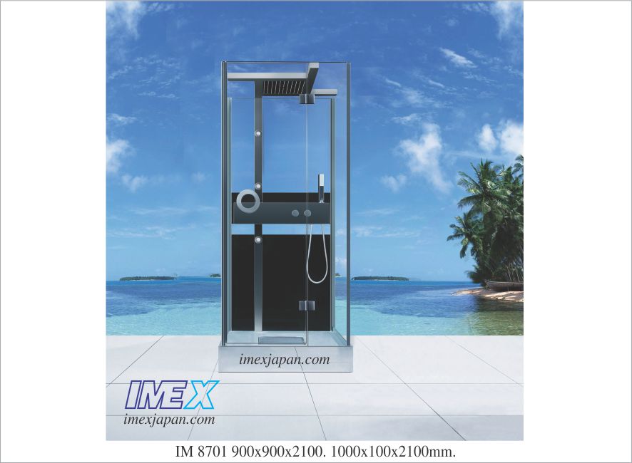 Phòng tắm massage, massage tắm đứng, tắm mưa, sen tắm đứng 3 chức năng, kính cường lực 6mm, khung nhôm và inox. Kích thước: 90*90*210cm