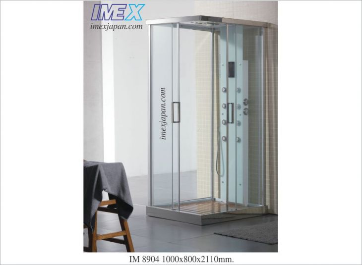 Phòng tắm massage, 8 jets massage tắm đứng ngồi, tắm mưa, sen tắm đứng 3 chức năng, nghe FM, quạt, đèn trần led. khung inox, kiếng cường lực 6mm. Kích thước: 100*80*210cm