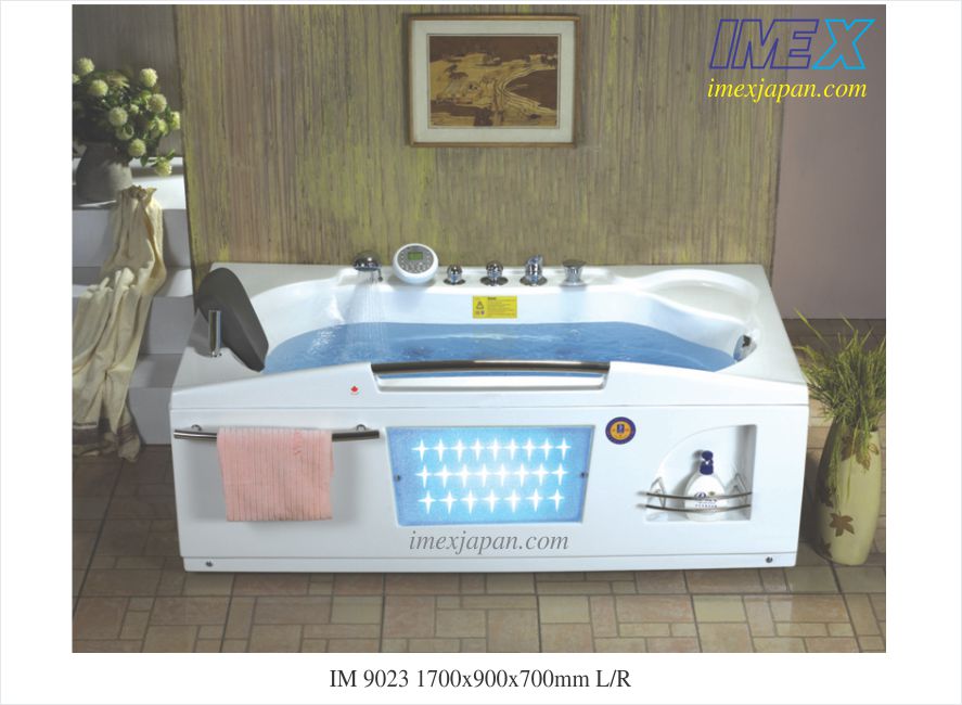 Bồn tắm nằm massage, massage tạo sóng 1.5 ngựa, sen tắm 3 chức năng linh hoạt, vòi cấp nước, ghế ngồi. gối, thanh máng khăn, kệ để xà bông, 1 đèn đổi màu. Kích thước: 1700*900*630mm