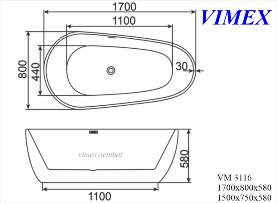 Bồn tắm ngâm oval kết hợp sen vòi nóng lạnh 1m7 giá 38000k